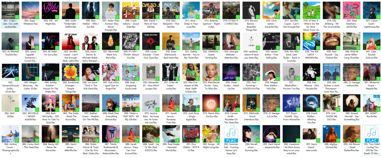 【无损FLAC格式】KKBOX西洋新歌日榜 (20240131) ├─ 001. J.Tajor - Like I Do (with sunkis).flac ├─ 002. Kygo - Whatever.flac ├─ 003. IVE - All Night.flac ├─ 004. Justin Timberlake - Selfish.flac ├─ 006. Alan Walker - Who I Am.flac ├─ 007. Peder Elias - Forever Was Never Enough.flac ├─ 008. Crash Adams - Good Side.flac ├─ 009. David J - Rest of Your Life.flac ├─ 010. Alec Benjamin - Pick Me.flac ├─ 011. Alok - Deep In Your Love.flac ├─ 012. Brittney Spencer - Night In.flac ├─ 014. Lil Nas X - J CHRIST.flac ├─ 015. Benson Boone - Beautiful Things.flac ├─ 016. Chris James - Karaoke.flac ├─ 017. Jennifer Lopez - Can't Get Enough.flac ├─ 018. Lil Nas X - Where Do We Go Now - Music from Lil Nas X - Long Live Montero.flac ├─ 019. Lilly Ahlberg - Hit The Ground.flac ├─ 020. Mae Stephens - ADHD.flac ├─ 021. Calum Scott - Lighthouse.flac ├─ 022. AJ Mitchell - Foolish.flac ├─ 023. Lewis Capaldi - Someone I Could Die For.flac ├─ 024. Ali Gatie - I'm Sorry.flac ├─ 025. Jennifer Lopez - Can't Get Enough (feat. Latto).flac ├─ 026. Jason Derulo & Michael Bublé - Spicy Margarita.flac ├─ 027. Moncrieff - Want You More.flac ├─ 028. H1-KEY - Thinkin' About You.flac ├─ 029. Lucas Estrada - Close Your Eyes.flac ├─ 030. Ewan Mainwood - Bad Heart.flac ├─ 031. Gabby Barrett - You’re My Texas.flac ├─ 032. GANGGA - Sweet Hurting.flac ├─ 033. Georgia Webster - Attention.flac ├─ 034. vaultboy - where tf have you been.flac ├─ 035. James Arthur - Free Falling.flac ├─ 036. Kim Min Seok, Sam Ryder - Back In Love.flac ├─ 038. The Kid LAROI - HEAVEN.flac ├─ 039. Paul Russell - Say Cheese.flac ├─ 040. RIKA & Jamie Miller - Long Shot.flac ├─ 041. Cate - Rocket Science.flac ├─ 042. SawanoHiroyuki[nZk] - LEveL.flac ├─ 043. Megan Moroney - No Caller ID.flac ├─ 044. Ashley Kutcher - House On The Water.flac ├─ 045. Emotional Oranges - Simple Things.flac ├─ 046. Ice Spice - Think U The Shit (Fart).flac ├─ 047. Kali Uchis - Igual Que Un Ángel.flac ├─ 048. Andr - Swapping Socks.m4a ├─ 050. Alexander 23 - How Much Longer.flac ├─ 051. Erika de Casier - Lucky.flac ├─ 052. Rita Ora - Shape of Me (feat. Keith Urban).flac ├─ 053. MacKenzie Porter - Easy To Miss.flac ├─ 054. Cheat Codes - Head Up.flac ├─ 055. Paul Partohap - GOODLUCK.flac ├─ 056. Megan Thee Stallion - HISS.flac ├─ 057. Maximillian - Honest Too.flac ├─ 058. Etta Marcus - Skin Parade.flac ├─ 059. Alle Farben x Lewis Thompson - Love Hurt Repeat (feat. Mae Muller).flac ├─ 060. 21 Savage - redrum.flac ├─ 061. Mckenna Grace - Natalie.flac ├─ 062. NIKI - 24.flac ├─ 063. MICHELLE - NEVER AGAIN.flac ├─ 064. Beth McCarthy - IDK How To Talk To Girls.flac ├─ 065. The Smile - Read The Room.flac ├─ 067. Nathan Evans - Heather On The Hill.flac ├─ 068. Madi Diaz - Everything Almost.flac ├─ 069. Tiësto x FAST BOY - All My Life.flac ├─ 070. Jessica Baio - he loves me, he loves me not.flac ├─ 071. Sarah Jarosz - Runaway Train.flac ├─ 072. Josh Ross - Single Again.flac ├─ 073. Jhené Aiko - SunSon.flac ├─ 074. Conner Smith - Roulette On The Heart.flac ├─ 075. 24kGoldn - Good Intentions.flac ├─ 076. 21 Savage - n.h.i.e.flac ├─ 077. Brynn Cartelli - Boy From Home.flac ├─ 078. Frank Walker - Missing You.flac ├─ 079. Umi - SHOW ME OUT.flac ├─ 080. Sinead Harnett - Say Something.flac ├─ 081. ADMT - North.flac ├─ 082. Hollow Coves - Photographs.flac ├─ 083. Corey Kent - This Heart.flac ├─ 084. Becky Hill - Never Be Alone.flac ├─ 085. Gavin James - Afterlife.flac ├─ 086. Robin Schulz & Topic - One By One (feat. Oaks).flac ├─ 087. Tiësto, Rudimental & Absolutely - Waterslides.flac ├─ 088. Sarah Jarosz - Days Can Turn Around.flac ├─ 089. Jubël - Lie To Me (feat. KIDDO).flac ├─ 090. Real Estate - Haunted World.flac ├─ 091. Don Diablo - WTF R U!.flac ├─ 092. Kungs - All Night Long.flac ├─ 093. Summer Salt - Coming Home Isn't Easy.flac ├─ 094. Norah Jones - Running.flac ├─ 095. Zach Hood - dopamine.flac ├─ 096. Cavetown - let them know they're on your mind.flac ├─ 097. hario Island - tears.m4a ├─ 098. Highlyy - Honest.flac ├─ 099. Kid Bloom - Dead Butterflies.flac └─ 100. Tom Odell - Loving You Will Be The Death Of Me.flac
